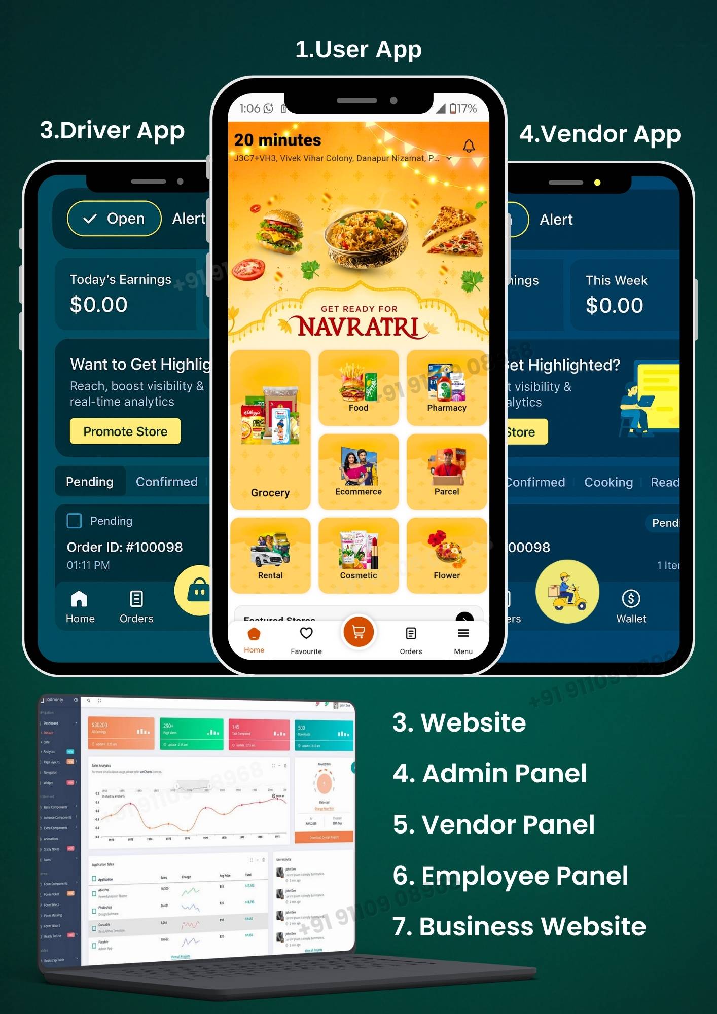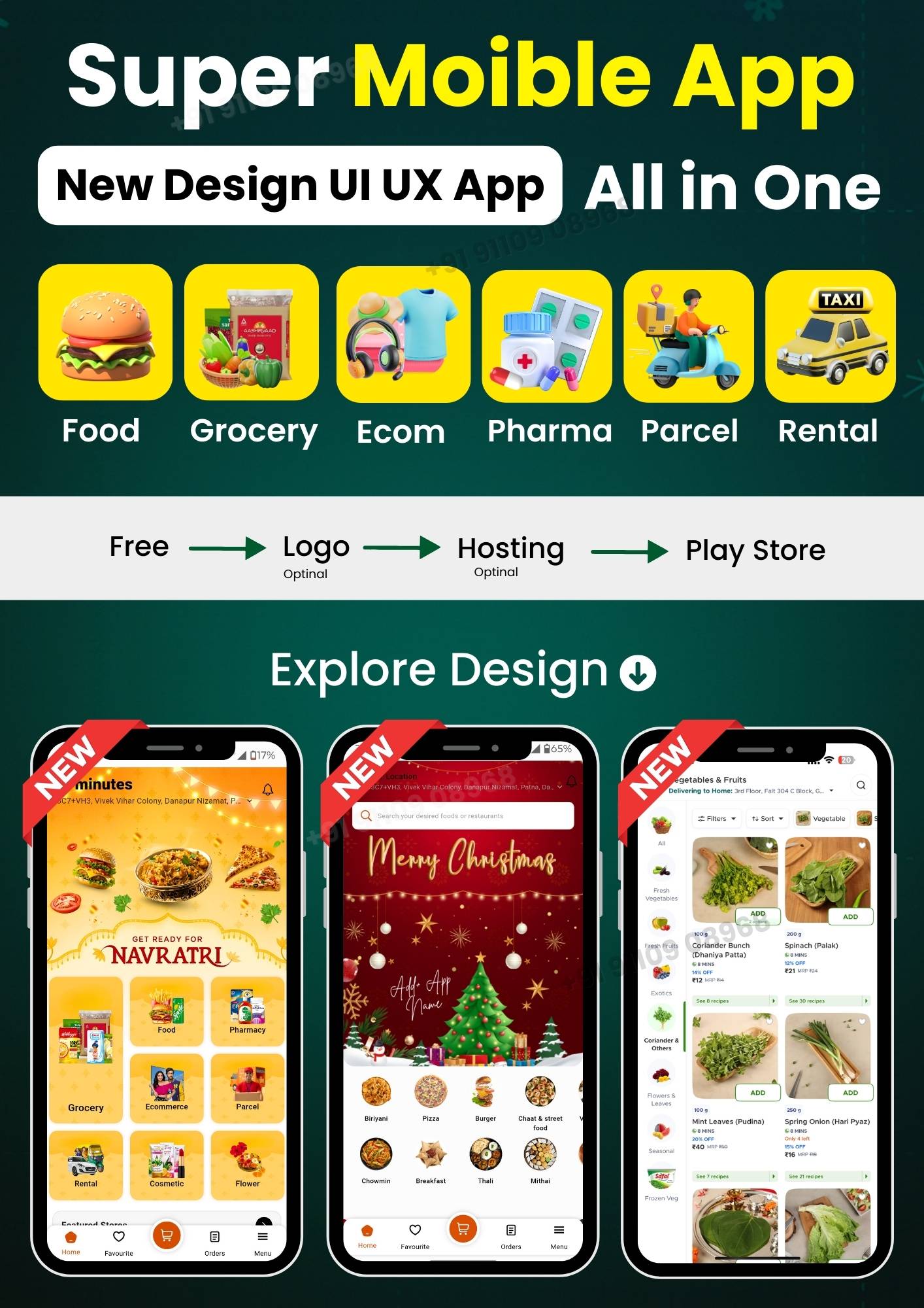 A modern Blinkit style Multi Vendor, Multi Module Super App designed for food, grocery, pharmacy, services, and eCommerce — all in one platform. Includes User, Vendor, Delivery apps and a powerful Admin Panel. Fast, customizable, and perfect for launching your own hyperlocal super app.